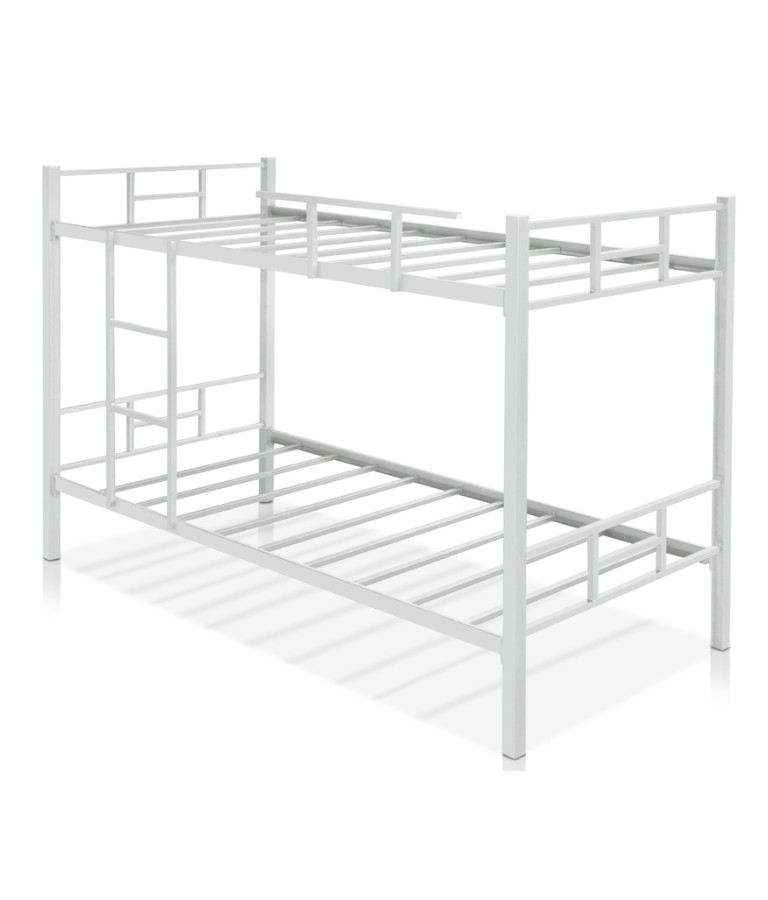 Beliche Solteiro Militar Inteiriça Giro 8 Medidas Beliche: Altura 1,50 m x Largura 93,5 cm x Profundidade 1,92 cm. Medidas ideais para o colchão: L - 0,88 x 1,88 (Padrão solteiro) Espessura das barras 0,9 mm. Estrados todo em aço. Escada em aço e Grade de proteção em aço. Sapatas protetoras nos Pés. Pintura epóxi eletrostática pó. Suporta até 150kg Sistema de montagem todo em encaixe. Cor Branco.