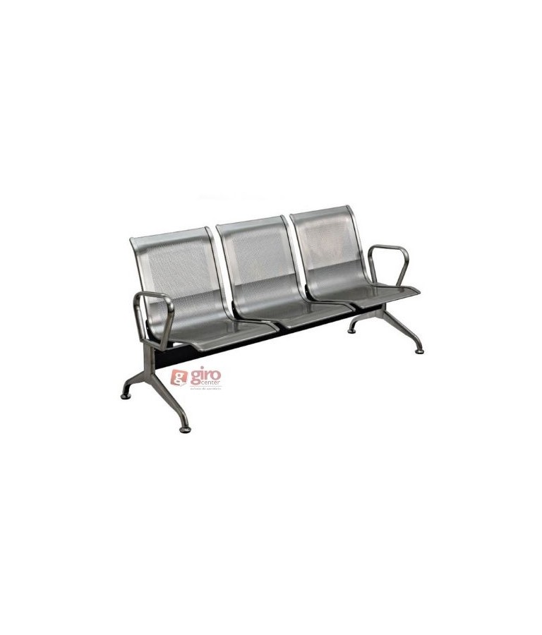 Longarina Aeroporto Premium Aço Inox 3 Lugares - Em Oferta